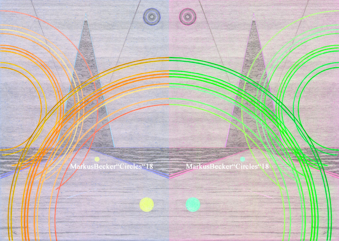 "Der 2 Kreise unter dem Bogen" Serie: pink-grün, Druckgröße DIN A2, 300 €.